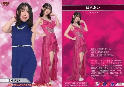 Nombre comercial en japonés: BBM/レギュラーカード/リングアナウンサー/BBM 女子プロレスカード2022 136[レギュラーカード]:はらあい
