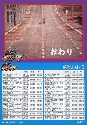 Nombre comercial en japonés: アニメ系トレカ/ノーマルカード/人造人間キカイダー トレーディングコレクション No.62[ノーマルカード]:放映リスト・2