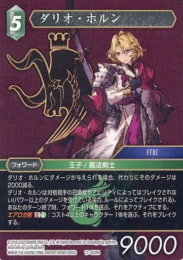Nombre comercial en japonés: ファイナルファンタジーTCG/H/風/反撃の雄たけび【17】 17-052H[H]:ダリオ・ホルン