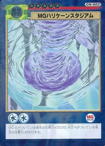 Nombre comercial en japonés: アニメ系トレカ/CN/構築済みデッキ 封入カード CN-002[CN]:(ホロ)MGハリケーンスタジアム