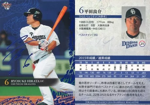 Nombre comercial en japonés: BBM/レギュラーカード/BBM2016 中日ドラゴンズ Autographed Edition DRAGONS DASH 25[レギュラーカード]:平田良介(青箔押しサイン入り)