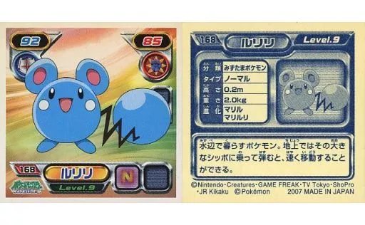 Nombre comercial en japonés: コレクションシール/ノーマル/ポケットモンスターダイヤモンド&パール最強シール烈伝2 168[ノーマル]:ルリリ