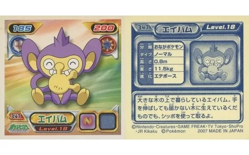 Nombre comercial en japonés: コレクションシール/ノーマル/ポケットモンスターダイヤモンド&パール最強シール烈伝4 347[ノーマル]:エイパム