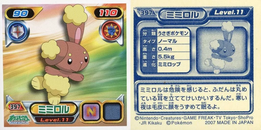 Nombre comercial en japonés: コレクションシール/ノーマル/ポケットモンスターダイヤモンド&パール最強シール烈伝5 397[ノーマル]:ミミロル
