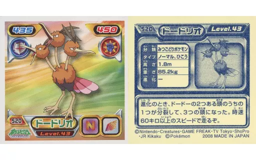 Nombre comercial en japonés: コレクションシール/ノーマル/ポケットモンスターダイヤモンド&パール最強シール烈伝6 520[ノーマル]:ドードリオ