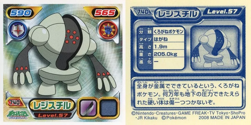 Nombre comercial en japonés: コレクションシール/ノーマル/ポケットモンスターダイヤモンド&パール最強シール烈伝8 740[ノーマル]:レジスチル