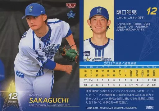 Nombre comercial en japonés: BBM/レギュラーカード/BBM2023 横浜DeNAベイスターズ DB03[レギュラーカード]:阪口皓亮