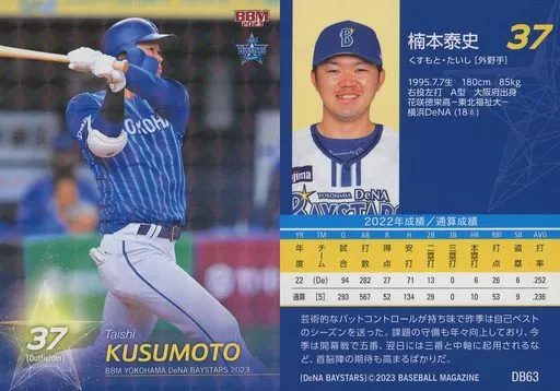 Nombre comercial en japonés: BBM/レギュラーカード/BBM2023 横浜DeNAベイスターズ DB63[レギュラーカード]:楠本泰史(キラカード版)