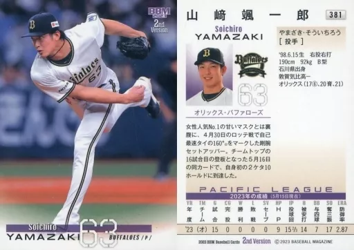Nombre comercial en japonés: BBM/レギュラーカード/BBM2023 ベースボールカード 2ndバージョン 381[レギュラーカード]:山﨑颯一郎