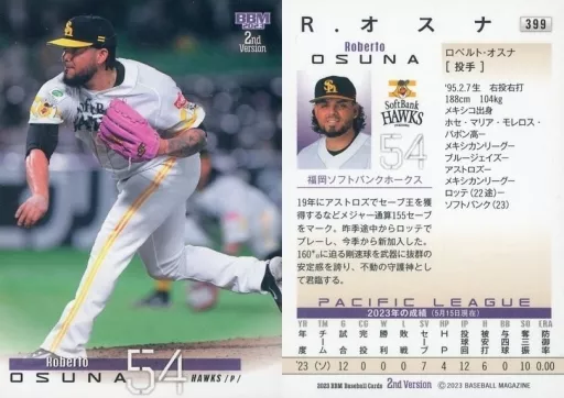 Nombre comercial en japonés: BBM/レギュラーカード/BBM2023 ベースボールカード 2ndバージョン 399[レギュラーカード]:R.オスナ