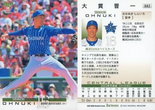 Nombre comercial en japonés: BBM/レギュラーカード/BBM2023 ベースボールカード 2ndバージョン 502[レギュラーカード]:大貫晋一