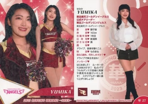 Nombre comercial en japonés: BBM/レギュラーカード/BBM2023 プロ野球チアリーダーカード DANCING HEROINE -華- 華27[レギュラーカード]:YUMIKA(ホロPPパラレル版)