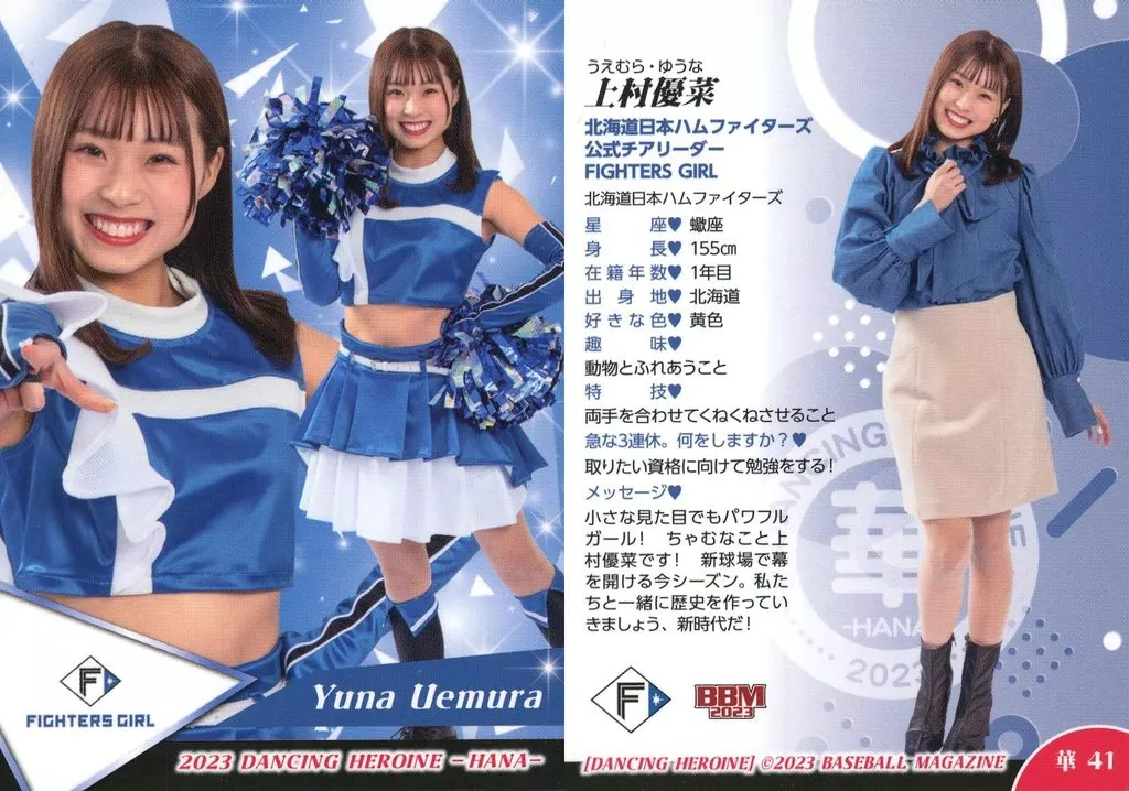 Nombre comercial en japonés: BBM/レギュラーカード/BBM2023 プロ野球チアリーダーカード DANCING HEROINE -華- 華41[レギュラーカード]:上村優菜