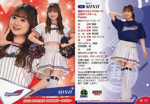 Nombre comercial en japonés: BBM/レギュラーカード/BBM2023 プロ野球チアリーダーカード DANCING HEROINE -華- 華55[レギュラーカード]:MINII(ホロPPパラレル版)