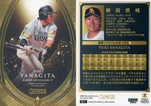 Nombre comercial en japonés: BBM/レギュラーカード/BBM2023 ジェネシス 017[レギュラーカード]:柳田悠岐