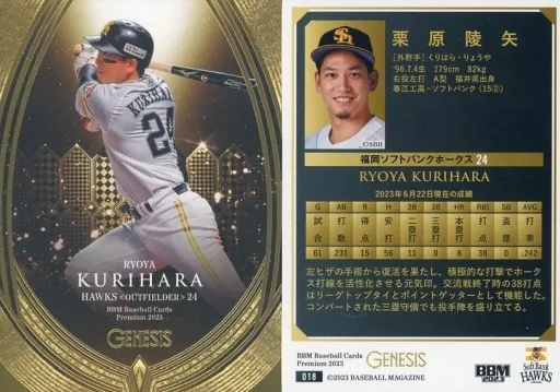 Nombre comercial en japonés: BBM/レギュラーカード/BBM2023 ジェネシス 018[レギュラーカード]:栗原陵矢
