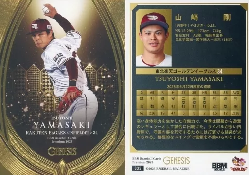 Nombre comercial en japonés: BBM/レギュラーカード/BBM2023 ジェネシス 035[レギュラーカード]:山﨑剛