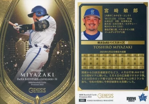 Nombre comercial en japonés: BBM/レギュラーカード/BBM2023 ジェネシス 069[レギュラーカード]:宮﨑敏郎