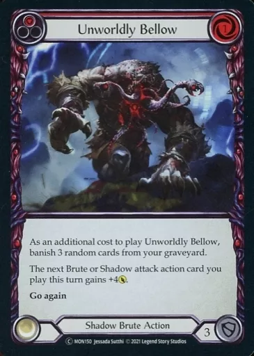 Nombre comercial en japonés: Flesh and Blood/C/Shadow Brute/英語版/Monarch Unlimited Booster MON150[C]:(Rainbow Foil)Unworldly Bellow (1)