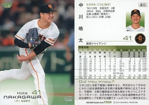 Nombre comercial en japonés: BBM/レギュラーカード/1stバージョンアップデート版/BBM2023 FUSION 617[レギュラーカード]:中川皓太