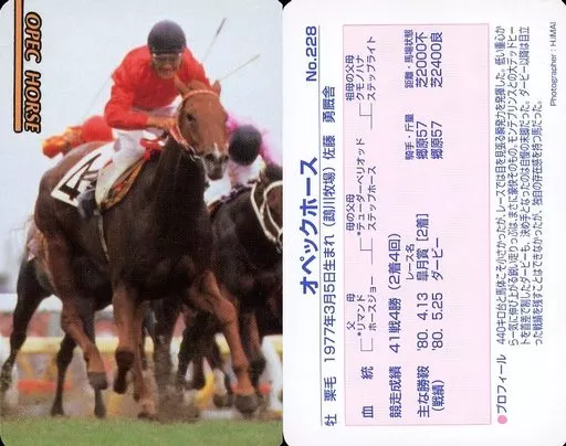 Nombre comercial en japonés: スポーツ/レギュラーカード/まねき馬カード 第6弾 馬結び Part.2 No.228[レギュラーカード]:オペックホース