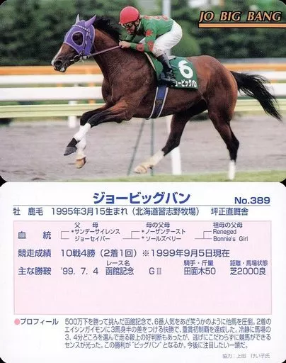 Nombre comercial en japonés: スポーツ/レギュラーカード/まねき馬カード 第9弾 馬喜び Part.1 No.389[レギュラーカード]:ジョービッグバン
