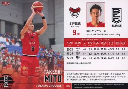 Nombre comercial en japonés: BBM/レギュラーカード/BBM2024 B.LEAGUE TRADING CARDS 2023-24 SEASON FAST BREAK 1st Half 034[レギュラーカード]:水戸健史