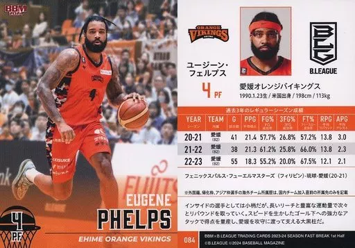 Nombre comercial en japonés: BBM/レギュラーカード/BBM2024 B.LEAGUE TRADING CARDS 2023-24 SEASON FAST BREAK 1st Half 084[レギュラーカード]:ユージーン・フェルプス