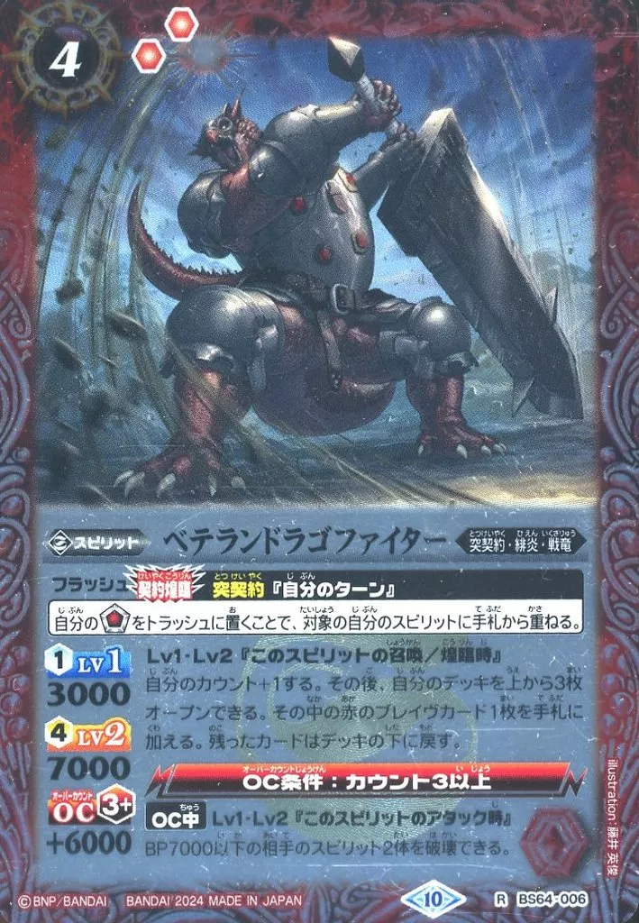 Nombre comercial en japonés: バトルスピリッツ/R/スピリット/リミテッドパック2024 契約編:界 BS64-006[R]:ベテランドラゴファイター(Xレア仕様)