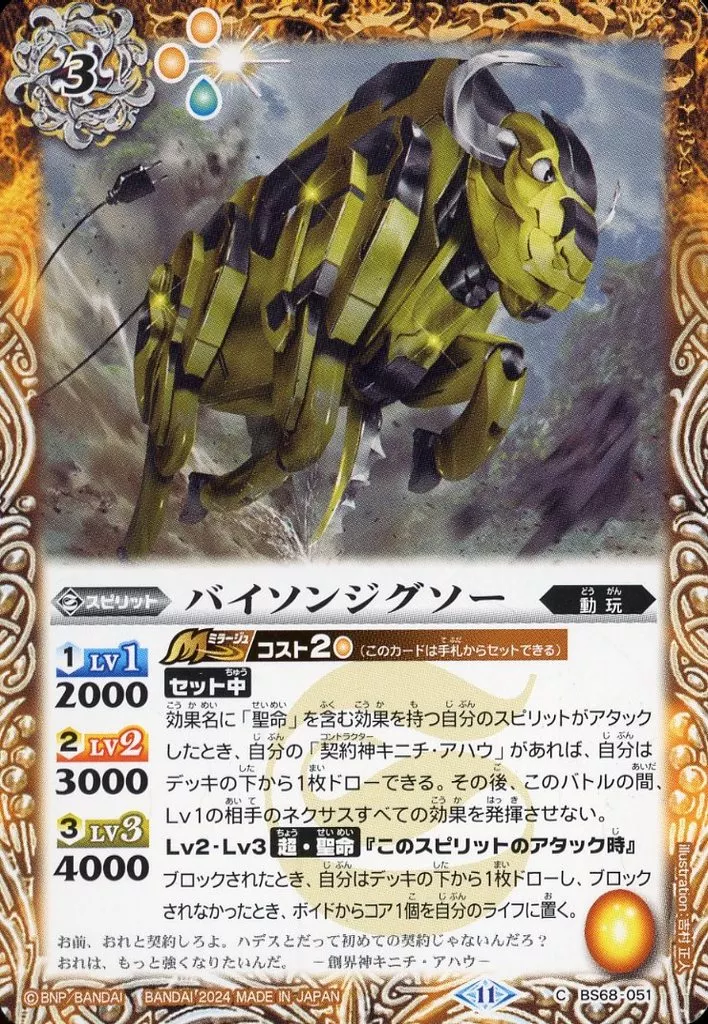 Nombre comercial en japonés: バトルスピリッツ/C/スピリット/契約編:真 第1章 神々の戦い BS68-051[C]:バイソンジグソー