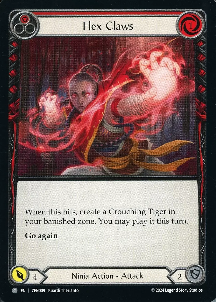 Nombre comercial en japonés: Flesh and Blood/C/Ninja/英語版/Part the Mistveil Zen Blitz Deck ZEN009[C]:Flex Claws (1)/柔軟な爪 (1)