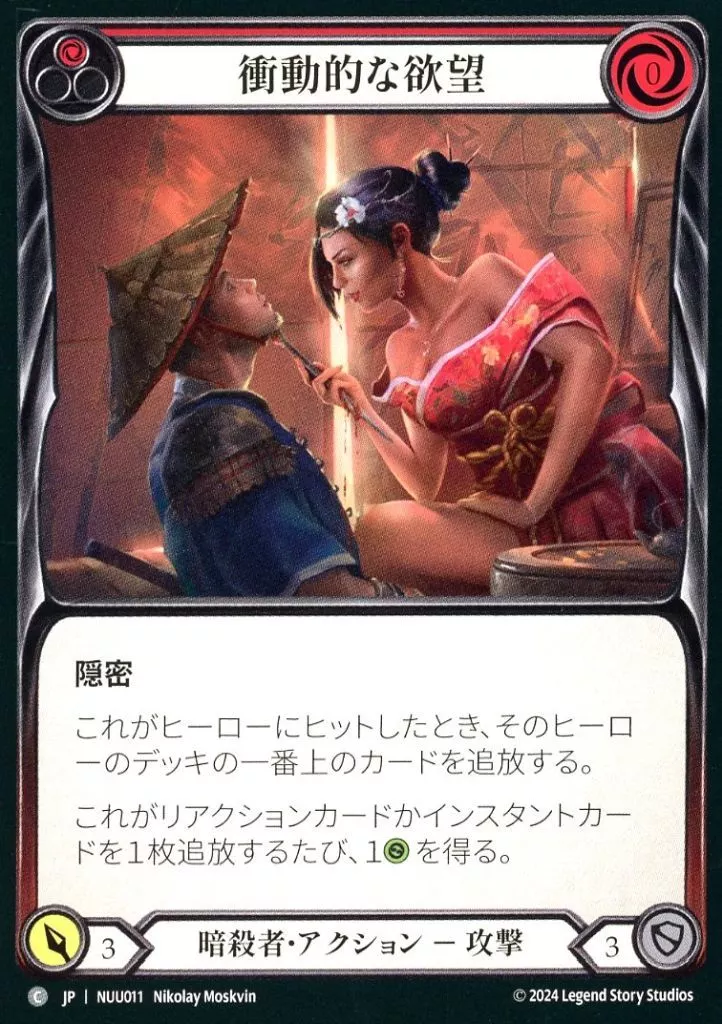 Nombre comercial en japonés: Flesh and Blood/C/暗殺者/日本語版/霧隠の秘境(Part the Mistveil) ブリッツデッキ「ヌゥ」 NUU011[C]:衝動的な欲望 (1)/Impulsive Desire (1)