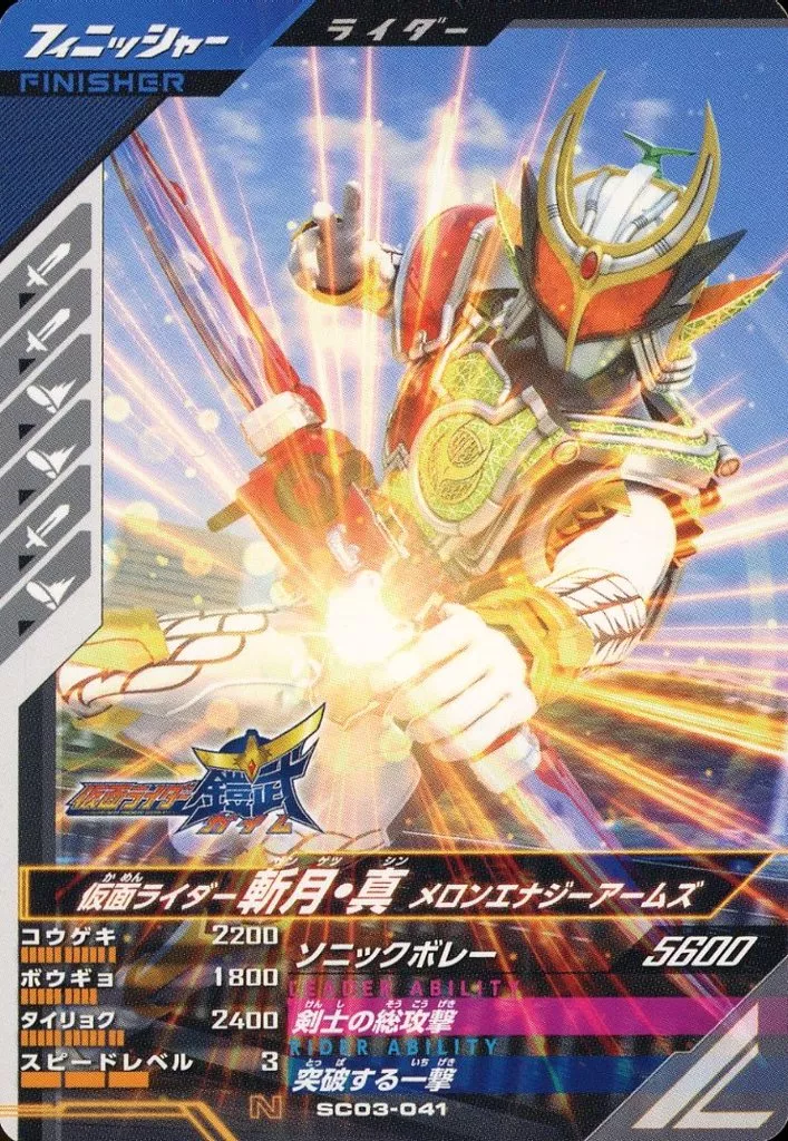 Nombre comercial en japonés: ガンバライジング/N/フィニッシャー/レジェンズ シンクロ神話3章 SC03-041[N]:仮面ライダー斬月・真 メロンエナジーアームズ