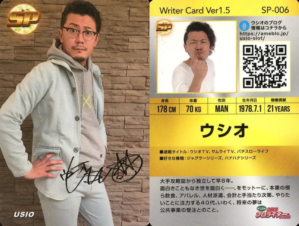 Nombre comercial en japonés: コレクションカード(男性)/プロライターチップス 第1.5弾 SP-006[レアカード]:ウシオ/ホログラム仕様・印刷サイン入り/プロライターチップス 第1.5弾