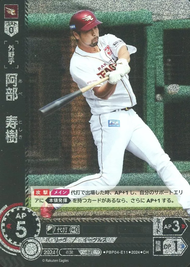 Nombre comercial en japonés: プロ野球カードゲーム DREAM ORDER/CH/外野手/パ・リーグ ブースターパック 2024 Vol.4 PBP04-E11[CH]:阿部 寿樹