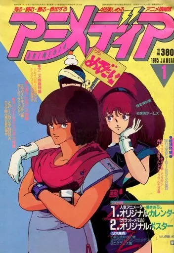 Apéndice : 1) Calendario original, 2) (Notas de Galat) Poster original/writing Apéndice : 1) Pegatinas de Año Nuevo, 2) 2 hojas de etiquetas de cassette, 3) 2 pinups (Heavy Metal L-Gaim, Fantasy War Chronicles, Leda, Area 88, GREED), 4) 2 copias instantáneas de Año Nuevo / '85 New Heroes and Heroes Research Study Cat's Eye, Hokuto no Ken, Lensman, Galian, Galat, Mechadock, Two Hawks