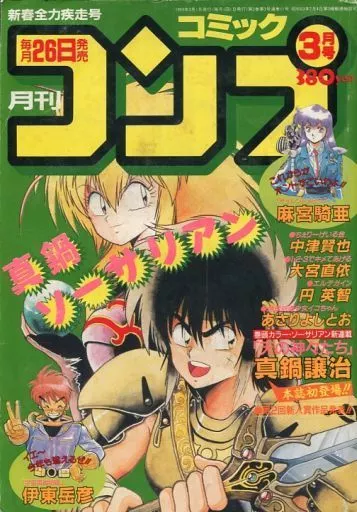 Manabe Sosarian / ¡Esto va a ser increíble! / "Silent Möbius" Kia Asamiya / Chieeriei Reikin Nakatsu Kenya / 直依 de Oomiya con una mezcla de 1, 2 y 3 / Yen エルデガイン Hidenori Kuramoto / Iko-chan Asari Yoshito / Kashira Color Sosarian New Series "Ten's Goddess" Joji Manabe por primera vez en esta revista! / Lanzamiento del Segundo Premio al Nuevo Artista! / Dragon Wars Sugita Ryusen / Yankee Yamamoto Yoshifumi / Detective Kenshi X Calíbar Fujiwara no Masayuki / Earth Defense Shojo Iko-chan Asari Yoshito / Hi-ho Otaki Yoshiemon II / Tonggari / Potechi Nakamura Mitsunobu / Premio al Nuevo Artista : Hayahito Kijō Yukito / año nuevo Kaisokusokui Go Furusawa Kawasaki