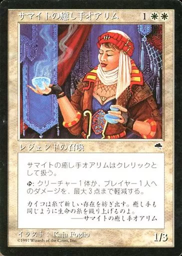 Nombre comercial en japonés: マジックザギャザリング/日本語版/R/Tempest(テンペスト)/白 [R]:サマイトの癒し手オアリム/Orim, Samite Healer
