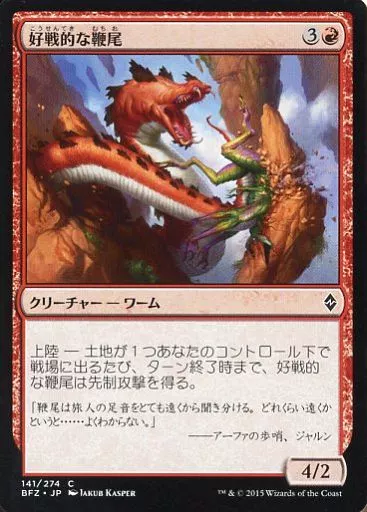 Nombre comercial en japonés: マジックザギャザリング/日本語版/C/戦乱のゼンディカー/赤 [C] : 好戦的な鞭尾/Belligerent Whiptail
