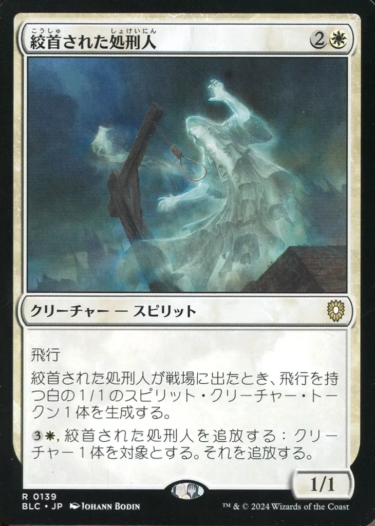 Nombre comercial en japonés: マジックザギャザリング/日本語版/R/白/ブルームバロウ 統率者デッキ 0139[R]:【BLC】絞首された処刑人/Hanged Executioner