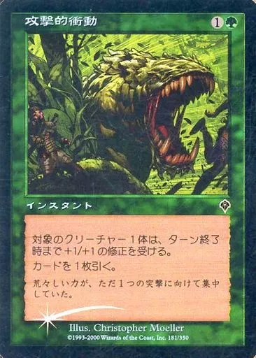 Nombre comercial en japonés: マジックザギャザリング/日本語版FOIL/C/緑/インベイジョン 181/350[C]:【INV】【FOIL】攻撃的衝動/Aggressive Urge