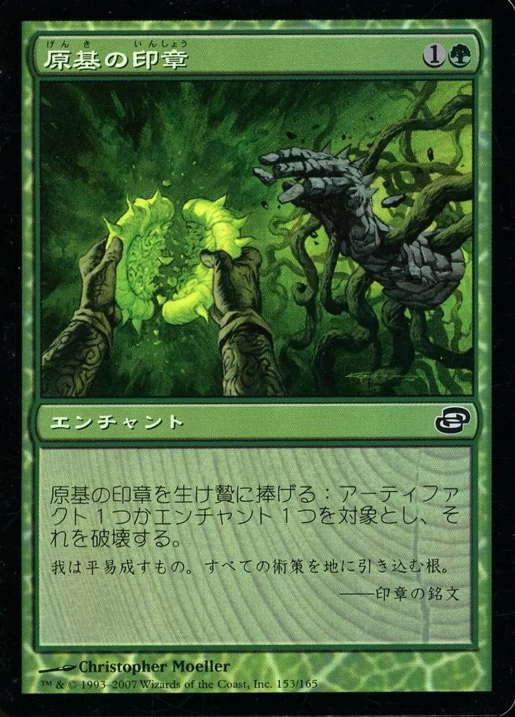 Nombre comercial en japonés: マジックザギャザリング/日本語版FOIL/C/緑/次元の混乱 153/165[C]:【PLC】【FOIL】【タイムシフト】原基の印章/Seal of Primordium