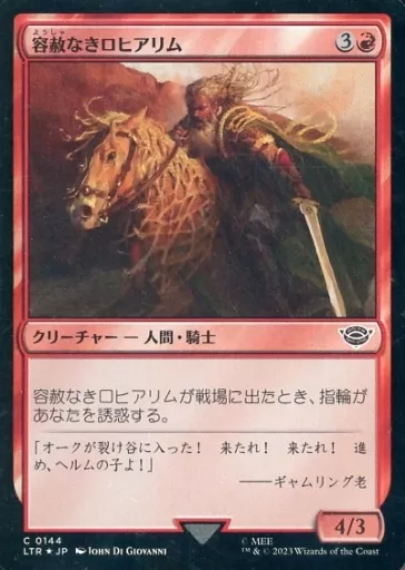 Nombre comercial en japonés: マジックザギャザリング/日本語版FOIL/C/赤/指輪物語:中つ国の伝承 0144[C]:【LTR】【FOIL】容赦なきロヒアリム/Relentless Rohirrim