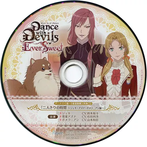 ドラマCD『アクマに囁かれ魅了されるCD「Dance with Devils-EverSweet-」シリーズ Vol.1~3』のアニメイト連動購入特典CD単品になります。【CAST】ジェキ(CV:鈴木裕斗)葛葉アズナ(CV:松田利冴)ポメラニアン(CV:山本和臣)