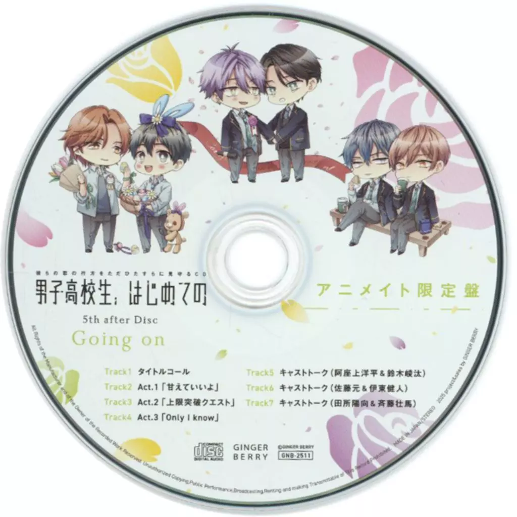 ドラマCD「彼らの恋の行方をただひたすらに見守るCD「男子高校生、はじめての」5th after Disc-Going on-」のアニメイト限定盤特典CD単品になります。