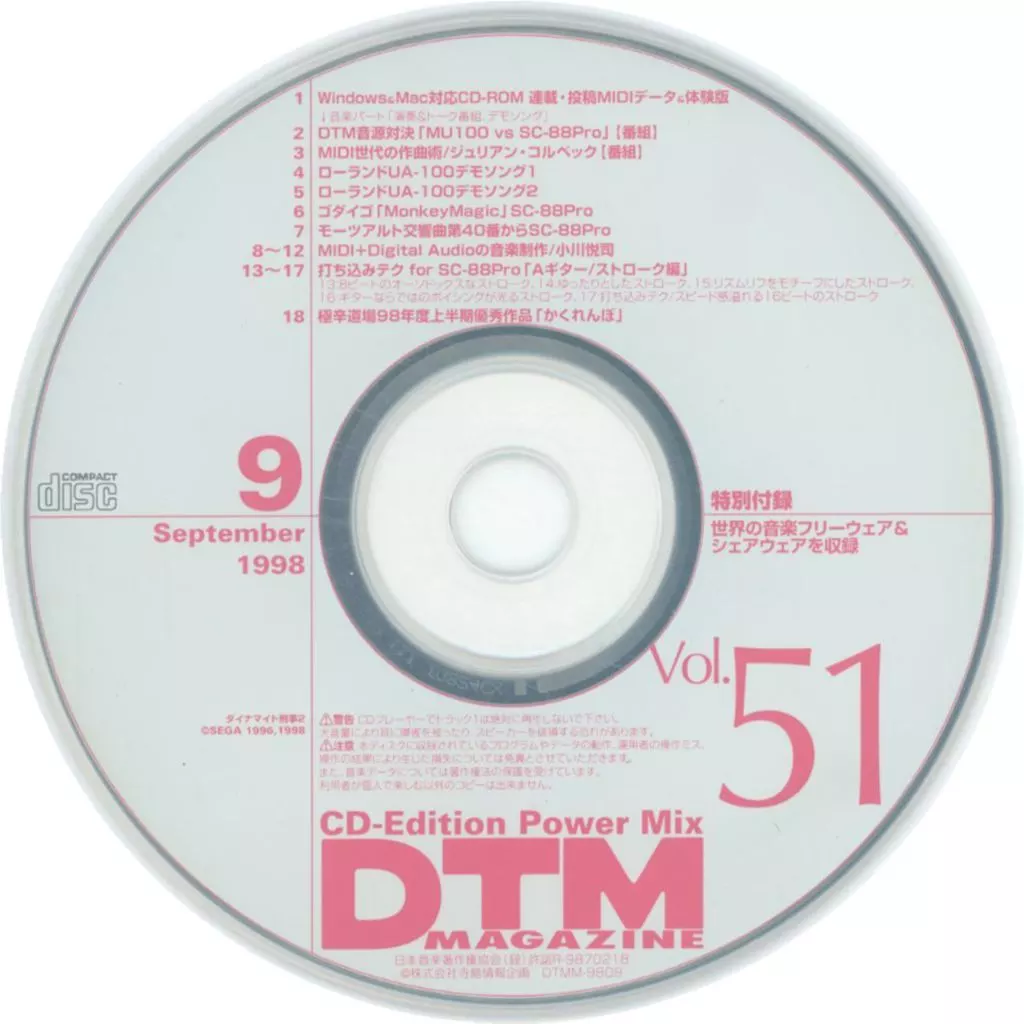 Windows/Mac CDソフト DTM MAGAZINE 1998年9月号 vol.51 付録CD-ROM