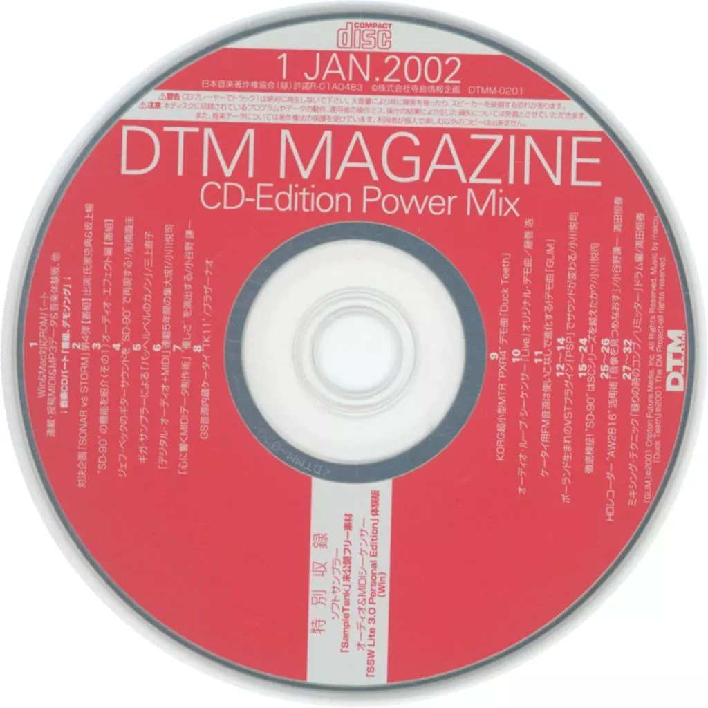 ※こちらの商品は、雑誌『DTM MAGAZINE 2002年1月号』の付録CD-ROM のみの商品となります。