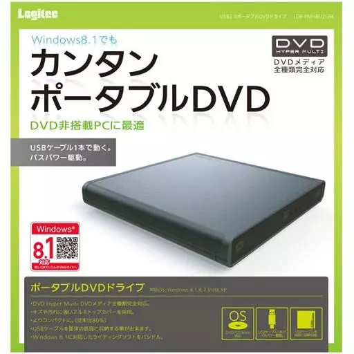 WindowsXP/Vista/7/8.1ハード ロジテック USB2.0 ポータブルDVDドライブ (ブラック) [LDR-PMH8U2LBK]