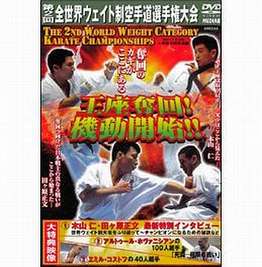 【収録時間】140分【画面サイズ】スタンダード【出演者一覧】監督:真崎明 出演:田ヶ原正文/エミル・コストフ/木山仁/数見肇【メーカー】クエストメディアエイト【枚数】1 枚【映像コメント】2001年6月10日、大阪府立体育会館にて開催された第2回全世界ウエイト制空手道選手権大会の模様をパッケージ化。田ヵ原、コストフ、木山ら世界から集まった強豪が4階級に分かれ、それぞれの覇を競い合う。【製作国名】日