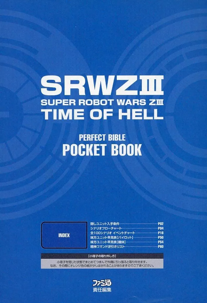 64ページ仕様こちらの商品は、「第3次スーパーロボット大戦Z 時獄篇 パーフェクトバイブル」の特典になります表紙「SRWZIII(SUPER ROBOT WARS ZIII) TIME OF HELL PERFECT BIBLE POCKET BOOK」